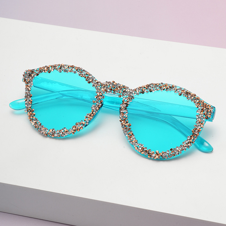 2025 新しいダイヤモンドがちりばめられたサングラス抗 UV ファッションラウンドフレーム手作りドットダイヤモンドパーソナライズされたトレンディなサングラス卸売