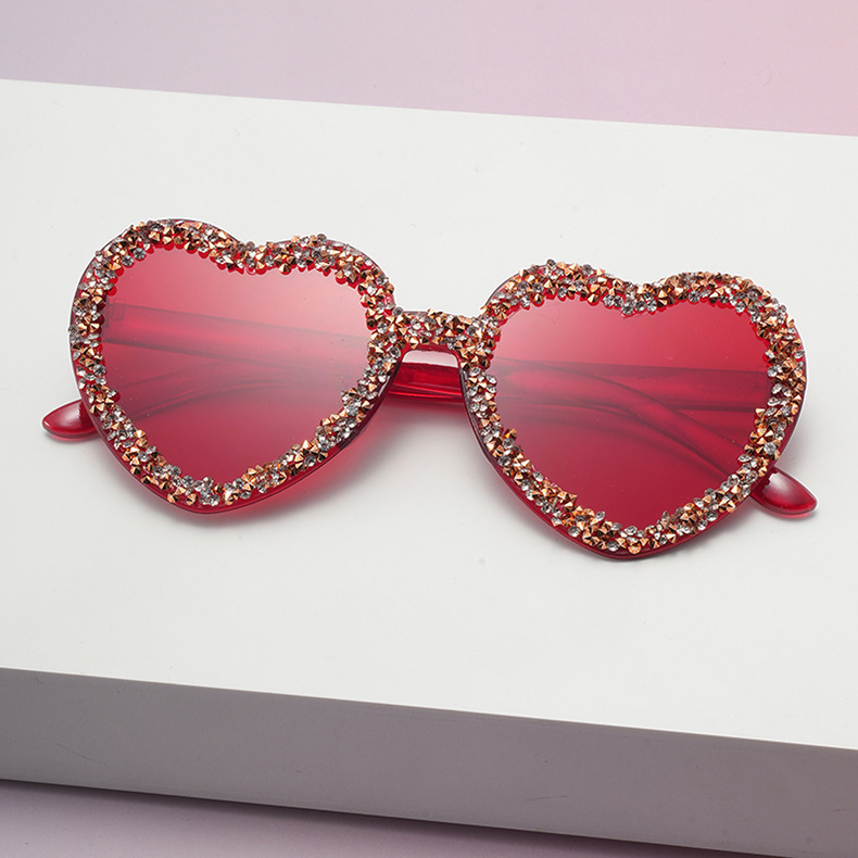 ダイヤモンドがちりばめられたフレームレスラブサングラス子供用新しい個性ピーチハート子供用サングラスインターネットセレブダンスベビーメガネ