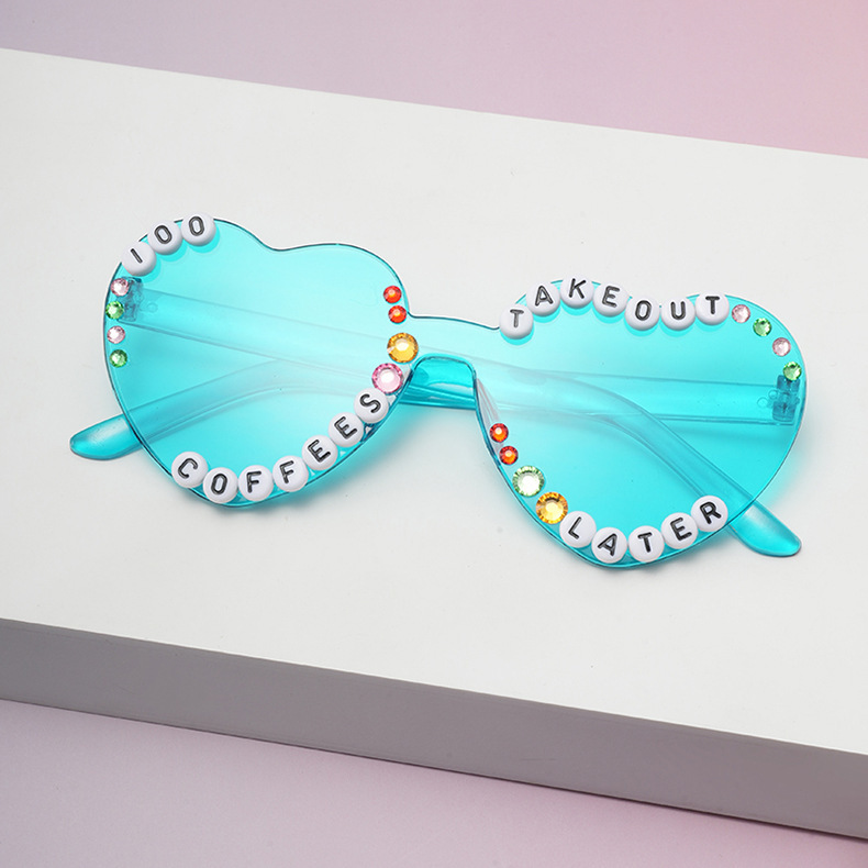 クロスボーダーレターハートフレームレスサングラス大人用オールインワンダイヤモンドメガネゼリーカラーラブサングラスメーカー卸売