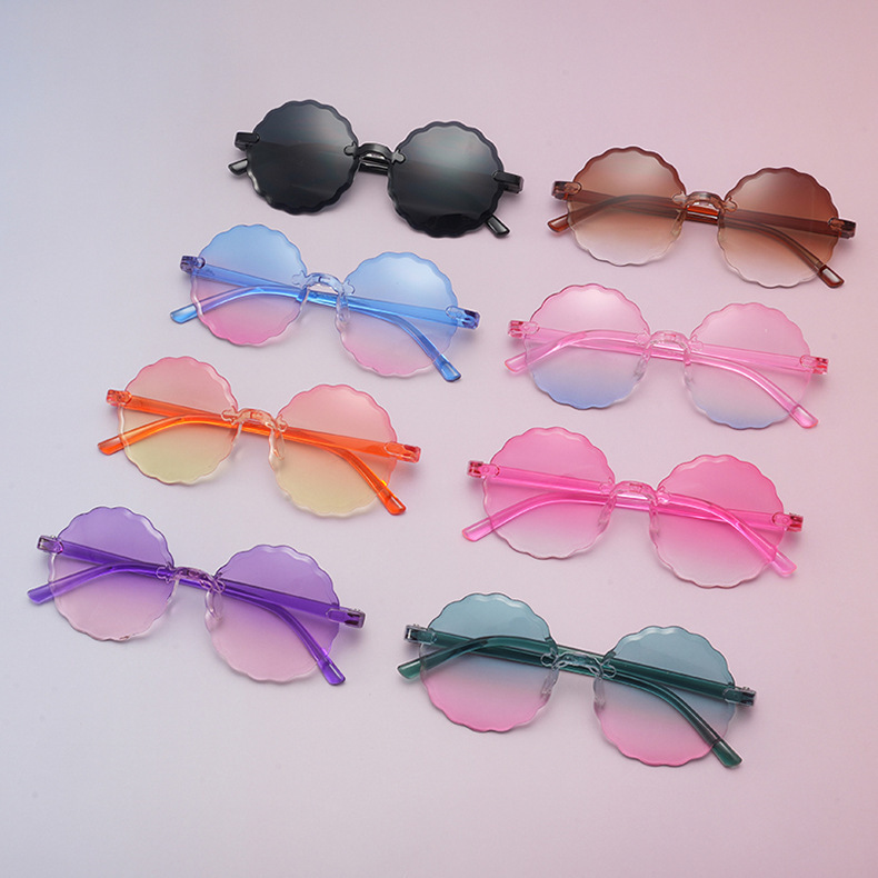 クロスボーダーフレームレスキャンディーカラー透明子供用サングラスオールインワンオーシャンサングラスかわいいベビーフラワーサングラス