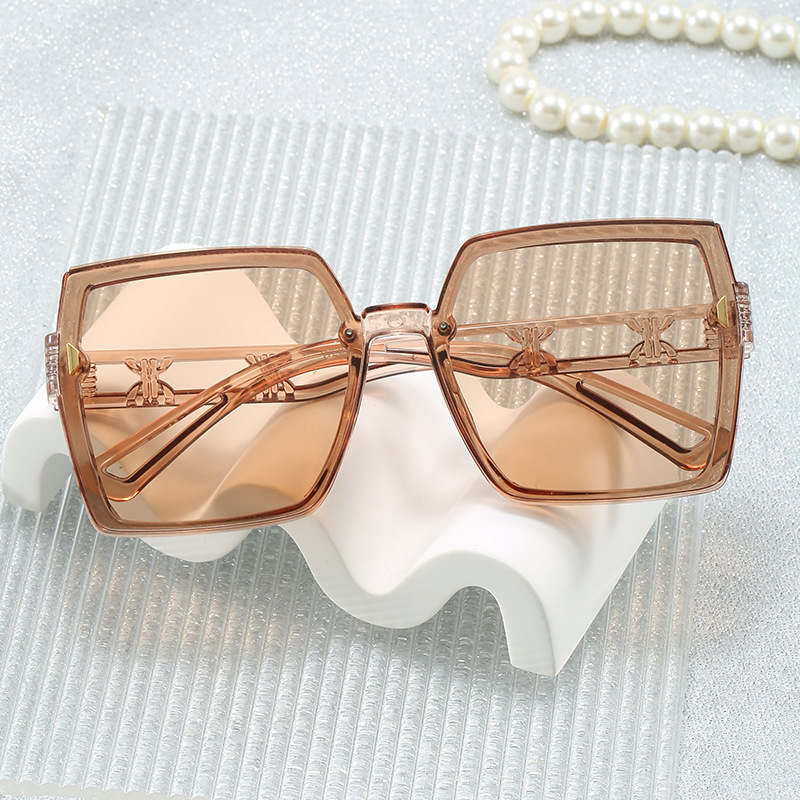 女性用レトロスクエア2色サングラス、ハイエンドインサンシェード、大きなフレームメガネ、顔見せ、小さなビーチトレンディサングラス