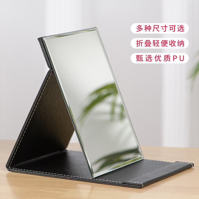 折り畳み鏡デスクトップpu革美化粧鏡携帯手持ち小鏡ins風学生携帯化粧