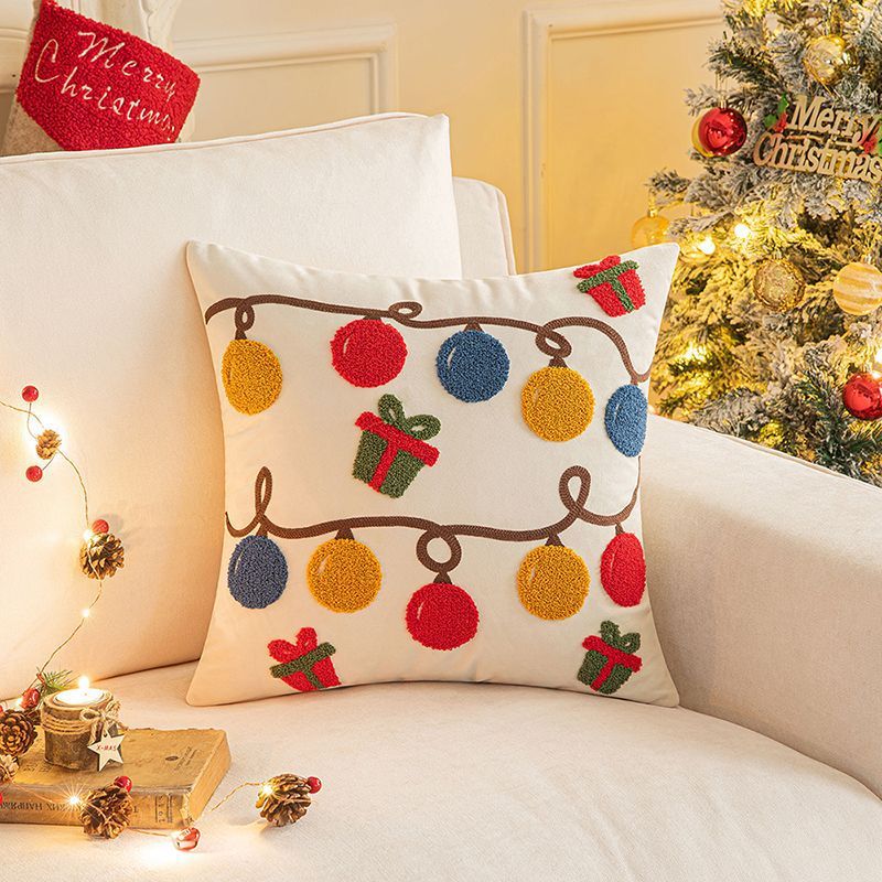 新しい正方形クリスマススロー枕カバー漫画タフテッド新年雰囲気リビングルームソファクッションパーティールームの装飾