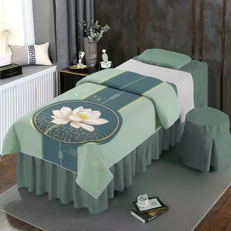新しい中国風のビューティーベッドカバー4点セット、ハイエンドのビューティーサロンベッドカバー、耳かき、シャンプーベッド、マッサージシート、オールシーズン対応