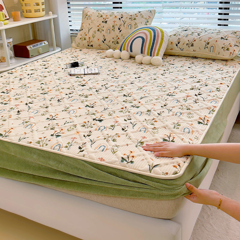コーラルベルベットベッドシーツシングルピース厚みのあるベッドカバー2022新しいオールインクルーシブマットレスプロテクター子供用ベッドシーツ3点セット冬