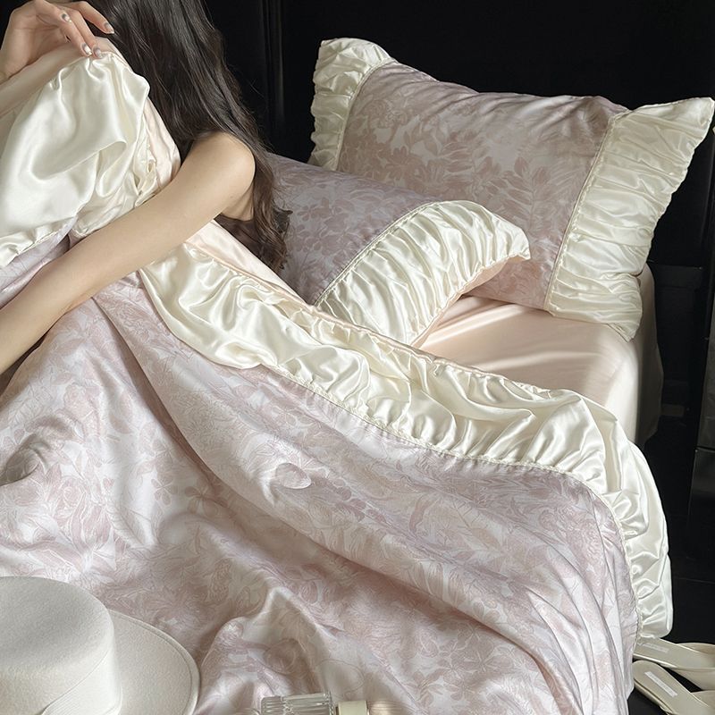 フレンチガール 100カウント レンチング テンセル サマークーラー キルト 4点セット 洗える エアコンキルト アイスシルク 薄手 裸寝キルト A