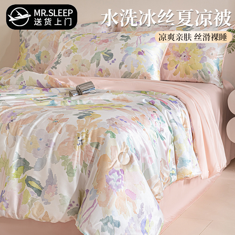 夏クールシルクサマーキルト抗菌アイスシルクサマーキルト4点セットシングルとダブル洗濯機で洗えるエアコンキルト