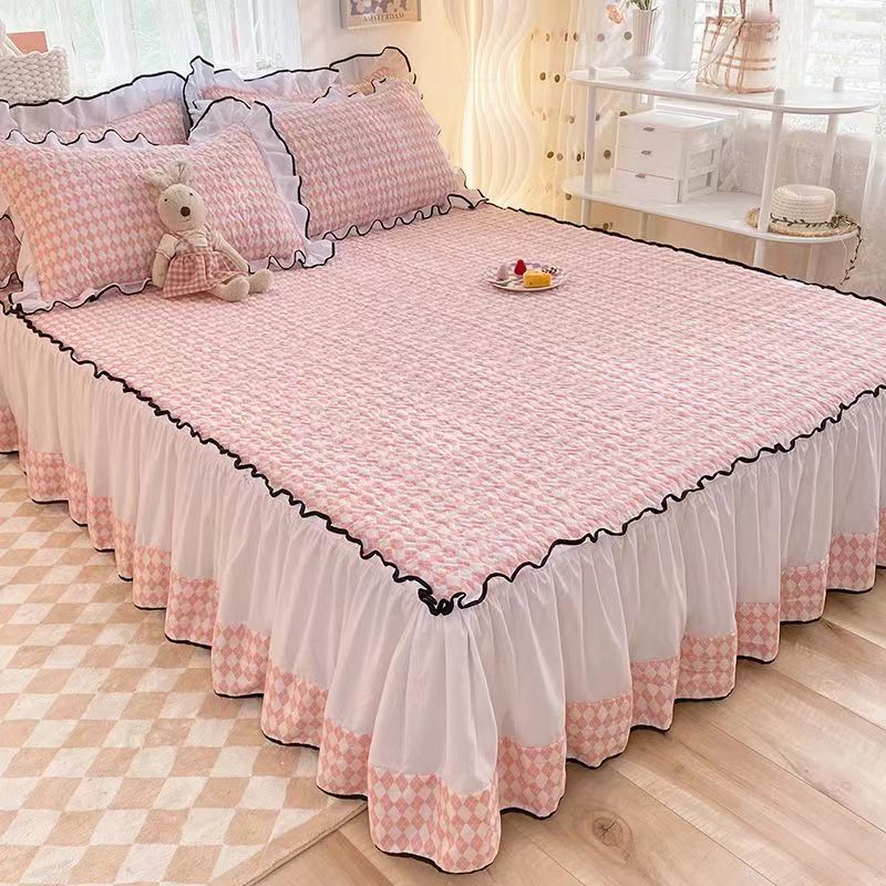 新しいプリンセススタイルの人気の厚みのあるキルティング滑り止めベッドスカートシングルピースベッドカバーユニバーサルベッドシーツ四季用4点セットシングル