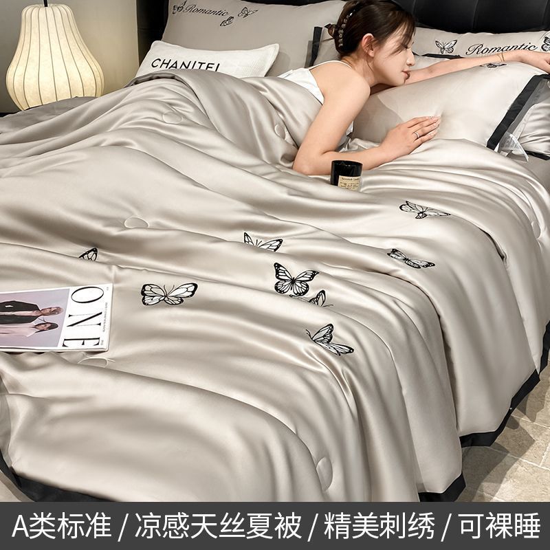 夏用リヨセルテンセルサマークイチゴ蝶刺繍サマーキルト4点セットライト高級ハイエンドエアコンキルト洗濯機で洗えます