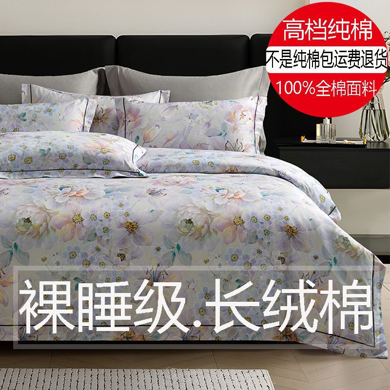 高級純綿4点セット、綿100%長綿プリント、軽い高級ベッドシーツ、掛け布団カバー、高級寝具