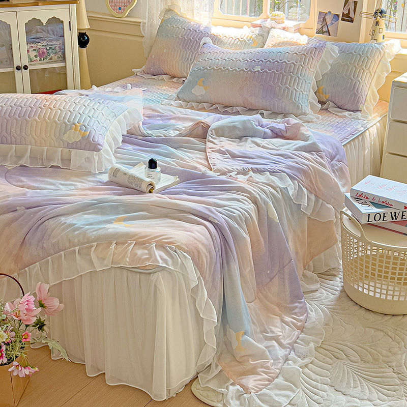 夏用レースマット、夏用キルト4点セット、涼しいアイスシルクマット、夏用キルト3点セット、エアコンキルト、ソフトマット、ベッドスカート