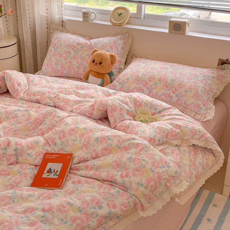 韓国風二重糸レースベッドシーツ4点セット学生寮3点セットホームレンタルセット