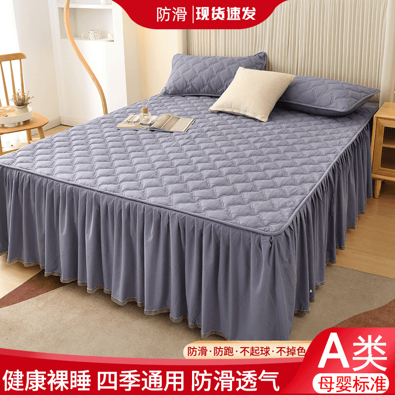 クラスA母子純綿キルティングレース3点ベッドスカートセット滑り止め高級ベッドスカートシモンズ純綿ベッドカバー
