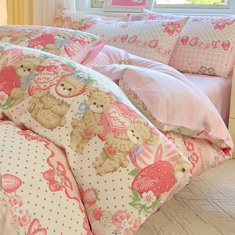 80番手綿4点セット 綿100%ベッドシーツ 掛け布団カバー 漫画3点セット シングル・ダブル 学生寮寝具
