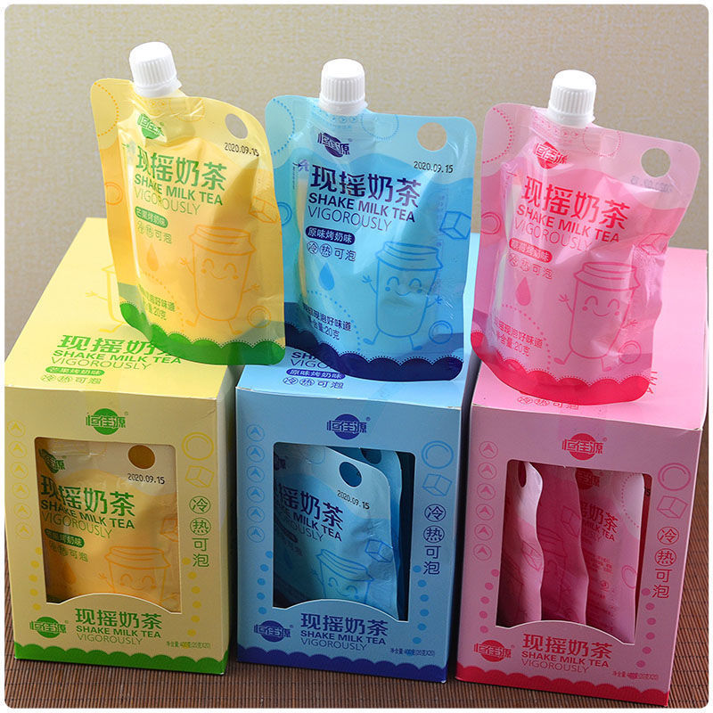 ネットの赤いミルクティーの袋の中で今手を振って泡を流します。ミルクティーの粉を飲みます。