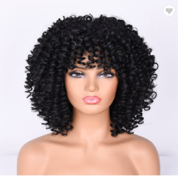 2023国境を越えた新製品欧米のかつら女性のファッション的な個性の短い巻き髪アフリカの化繊メカニズムの頭カバー卸売り