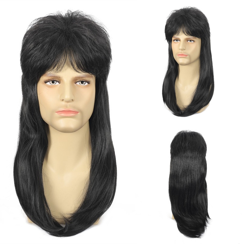 アマゾンの新型欧米男性かつら80sパンク重金属長巻きハロウィーンかつらメーカー卸売り