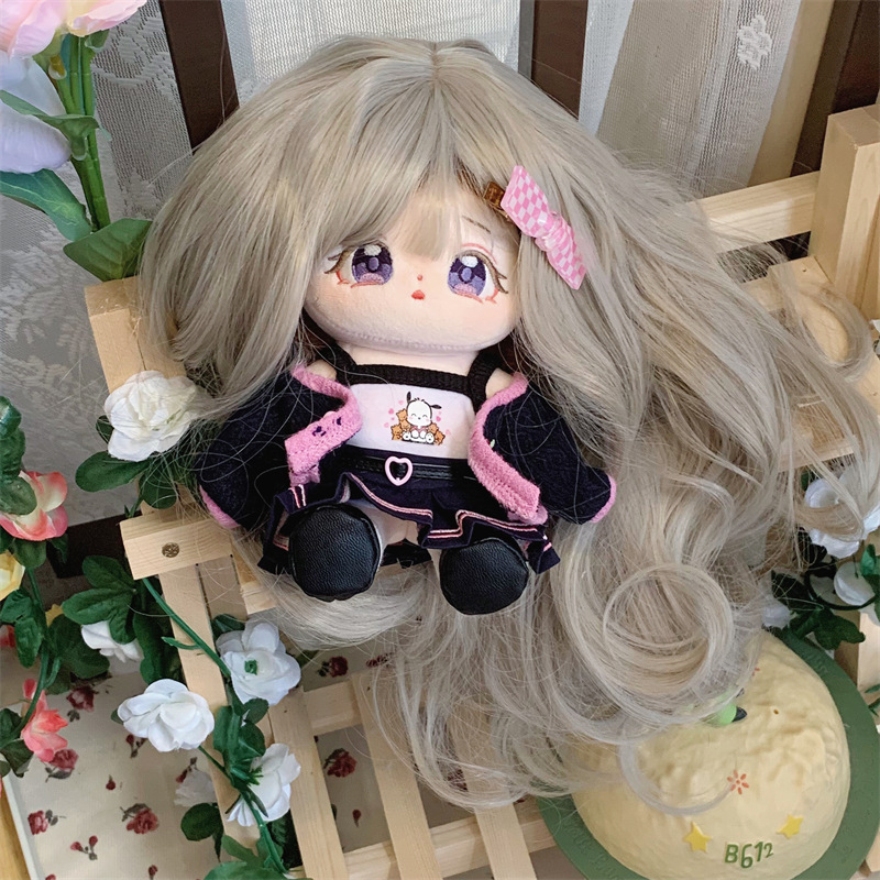 メーカーは実際に20cmの綿の人形をたたいて灰色の長いカールの人形の王女の女の子の子供の髪のカバーを混ぜます。