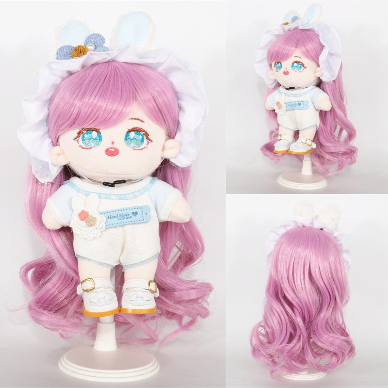 20cmコットン人形かつら高温糸化学繊維チー前髪ピンク長い巻き髪化学繊維かつら全体トップヘアセット
