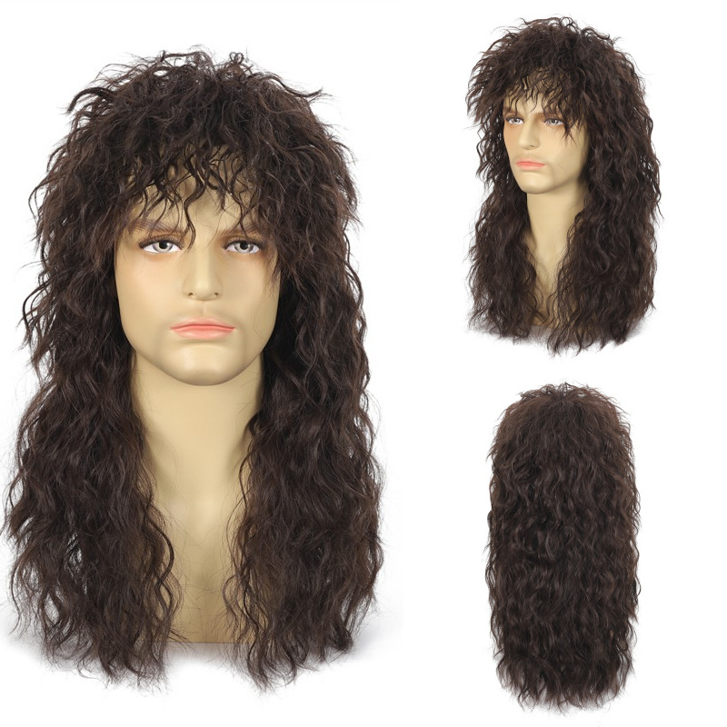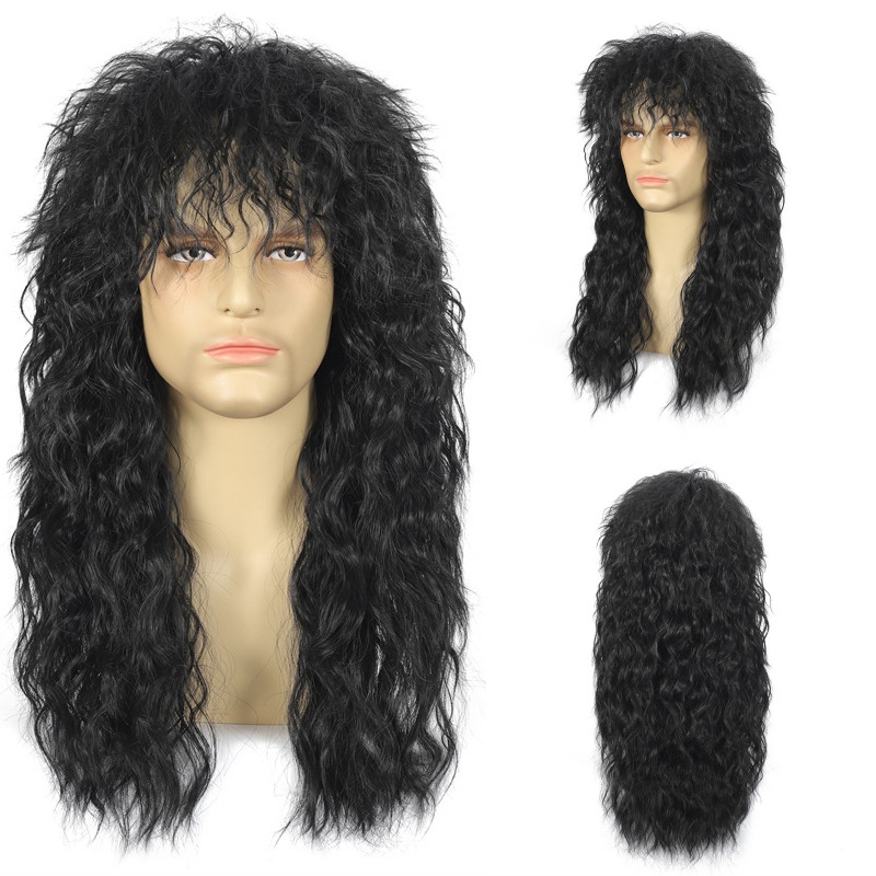アマゾンクロスボーダー欧米系メンズhairロングカールパンクヘビーメタルwigウィッグハロウィンウィッグカバー