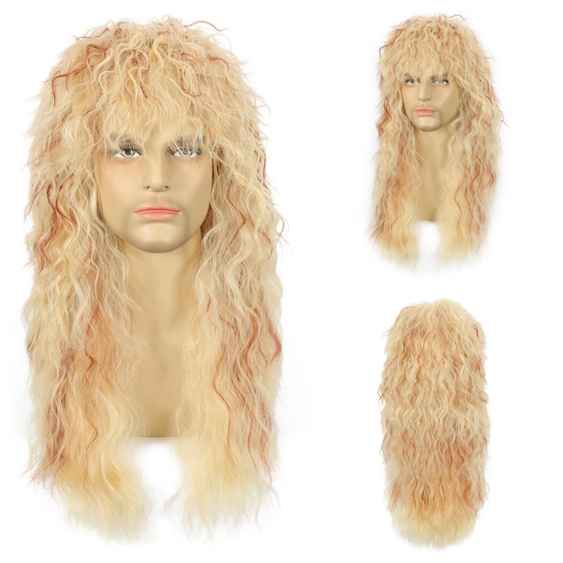 欧米の男性かつら80sパンク重金属ストール巻き髪祭り化学繊維高温糸かつらメーカー卸売り