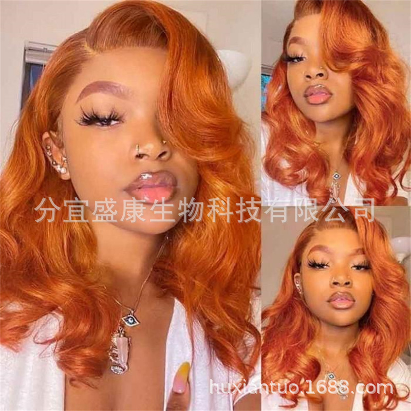 欧米の新商品のかつらは国境を越える女性の長い巻き髪の小さいレースの高温の糸の中で大きい波のオレンジ色の頭カバーの卸売りを分けます。