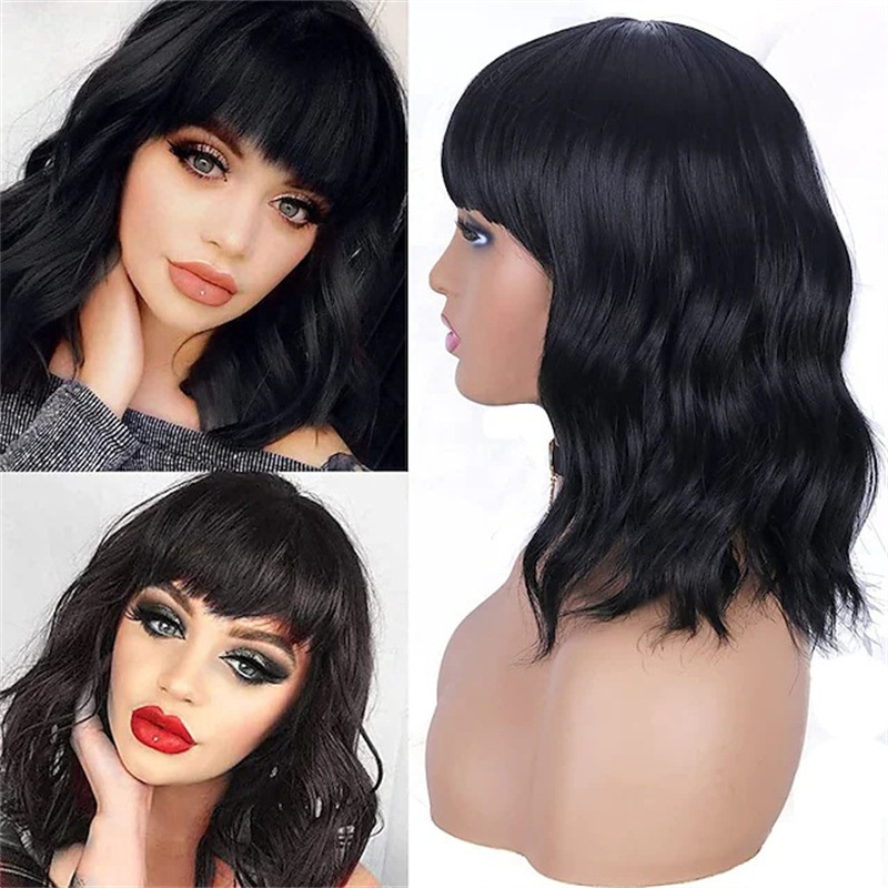 かつら欧米短巻き髪水波紋斉前髪bobo頭かつら女性化学繊維高温糸工場卸売りwigs