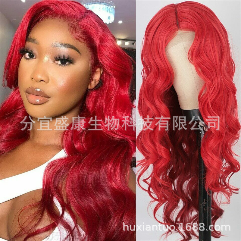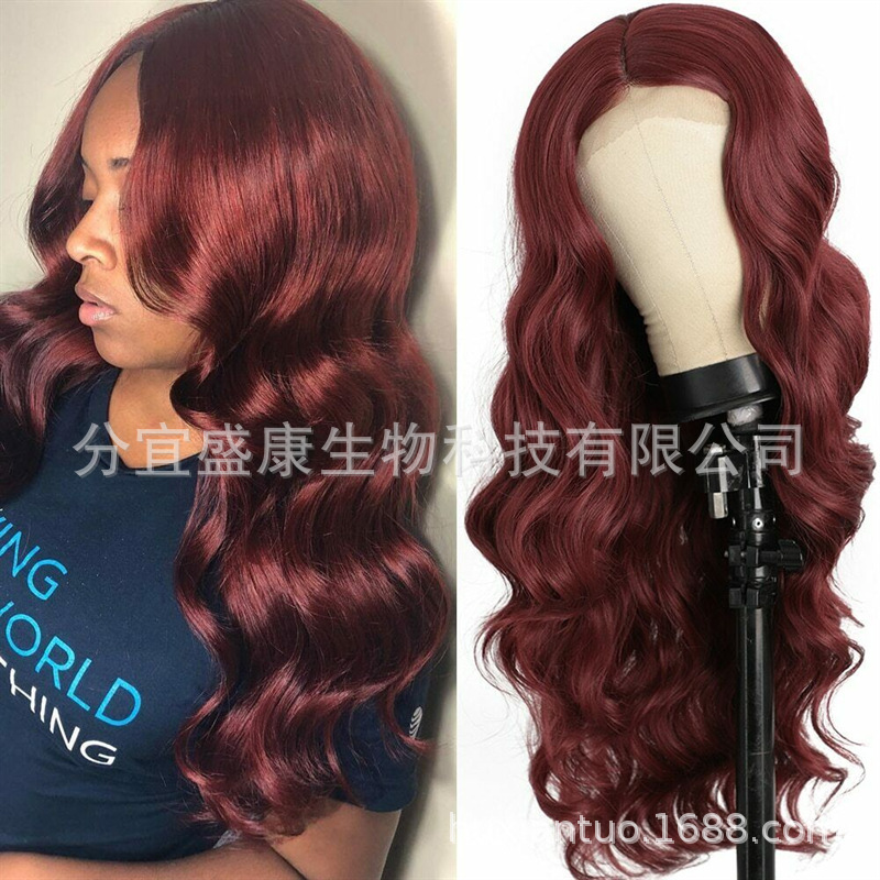 2022新品アマゾン欧米ウィッグレディースロングヘアワインレッド大きい波巻きwigフルトップかつらカバー