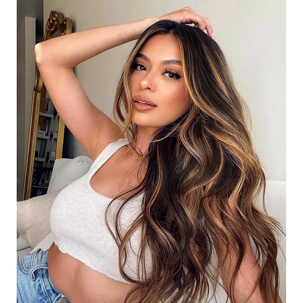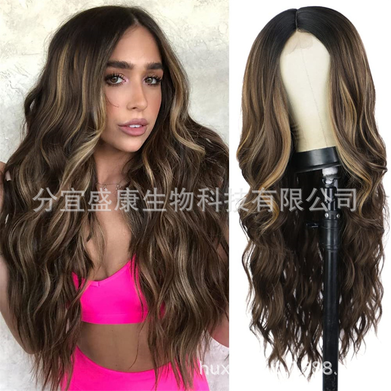 かつら女性欧米ファッション黒茶色ロングカールかつらセット自然中分クロスボーダー化学繊維かつらセットwig