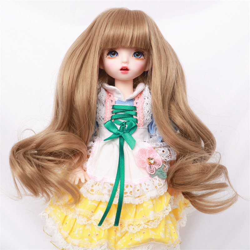 メーカーの新型bjdかつら人形は馬海毛の6分sd人形の長い巻き髪の高温糸アニメのかつらの卸売りをまねます。