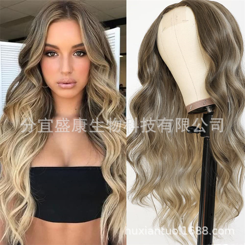 2022クロスボーダーメーカー卸売新型かつら女性欧米グラデーション色中分長直髪化繊高温糸頭カバー