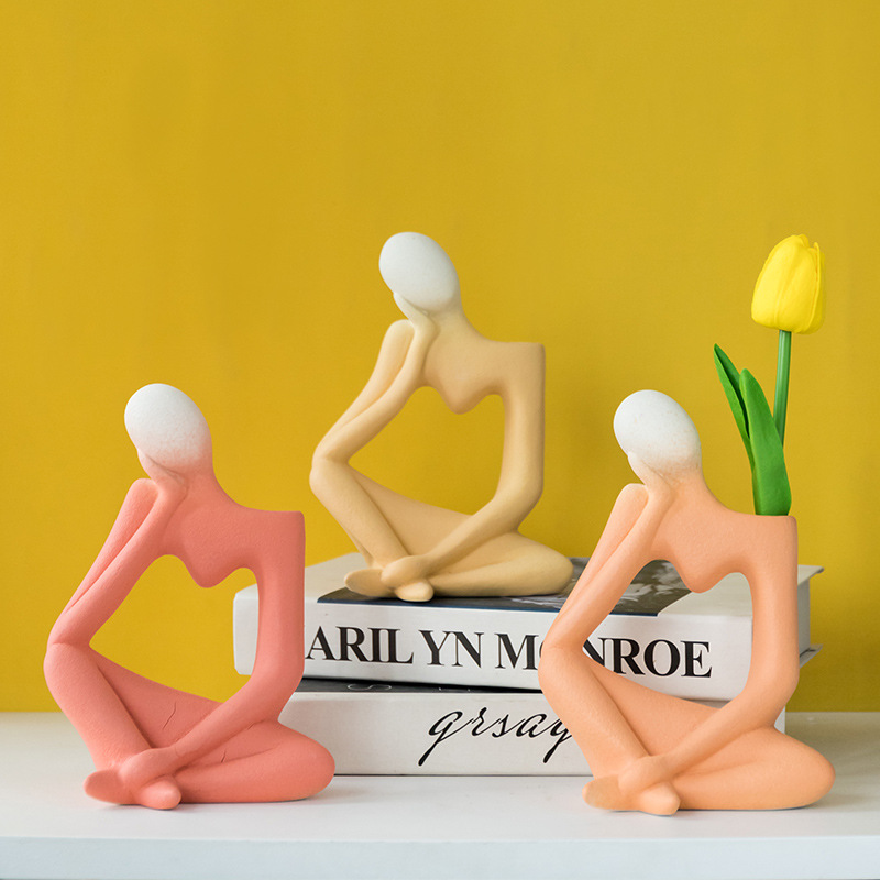 北欧ins抽象人物思考者花瓶芸術装飾品創意家庭客間書斎現代装飾品