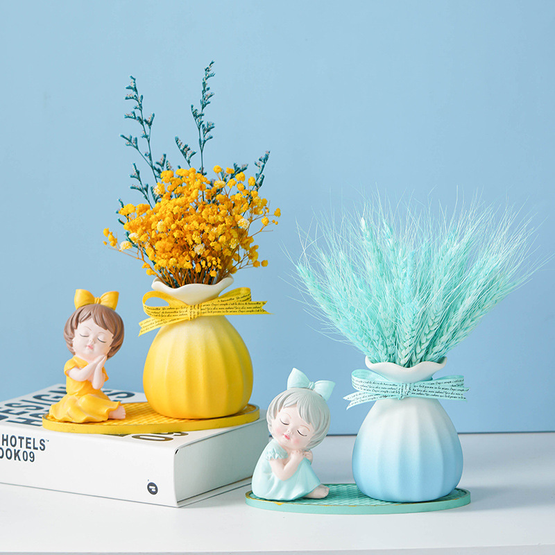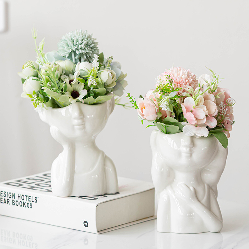 シンプルins風陶磁器花瓶文芸装飾少年女の子置物リビング生け花器テーブル飾り物