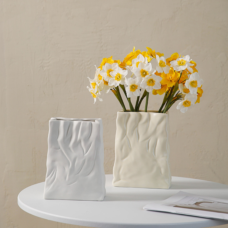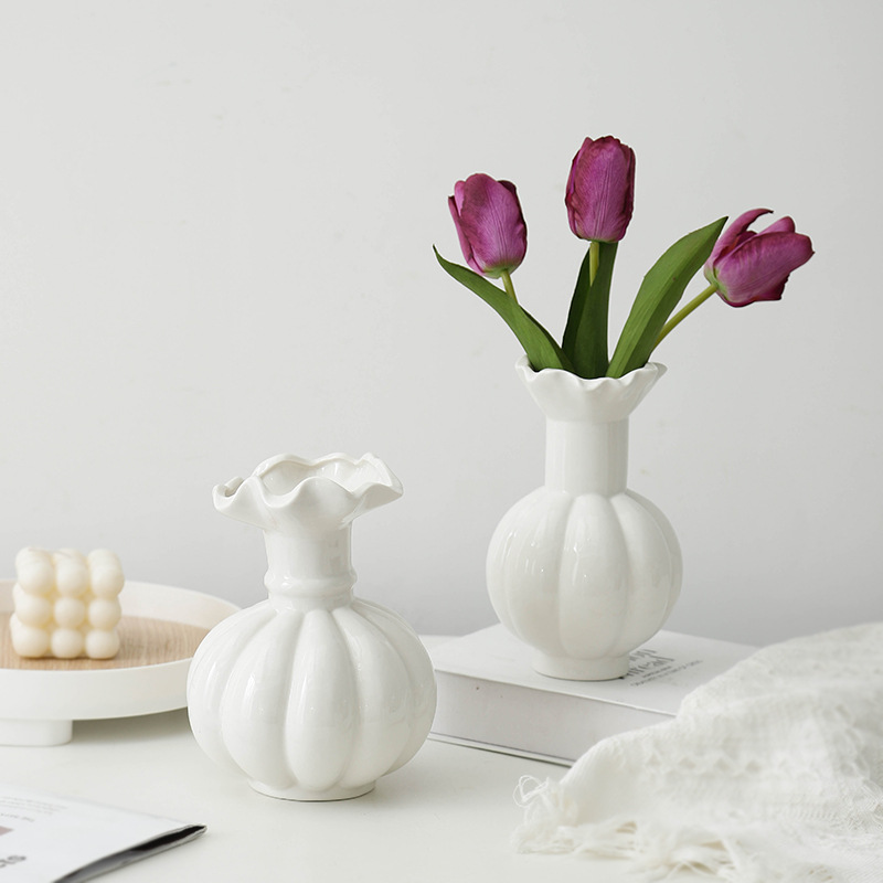 北欧シンプル陶磁器白い花瓶生け花生け花水養食テーブルリビング高級感ドライ花器置物