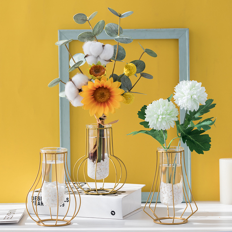 北欧の軽い贅沢な花瓶の置物の客間のデスクトップの生け花の現代ネットの赤い鉄の芸のシミュレーションの花の食卓のテレビの戸棚の花器
