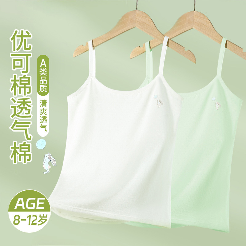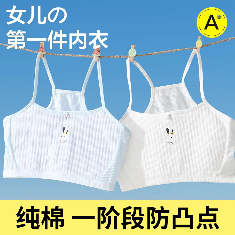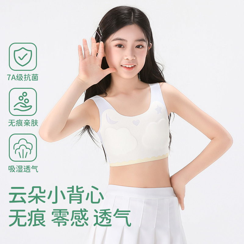 女の子の発育期の下着の一段階の10歳の純綿の長いタイプの小さいベストの思春期の中学生の薄いタイプは胸を拭きます。