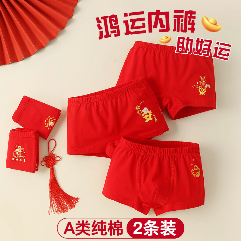 2枚入りA類純綿児童紅下着中大童2025本命蛇年男子児童赤色平角パンツ