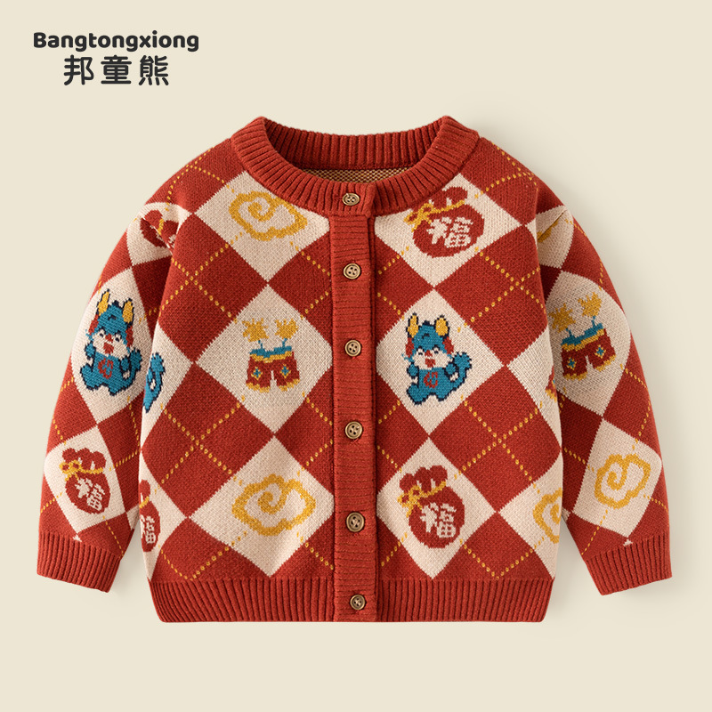 ベビーセーター秋冬女児上着ベビーニット赤a類純綿A男児子供用ボトムシャツ冬