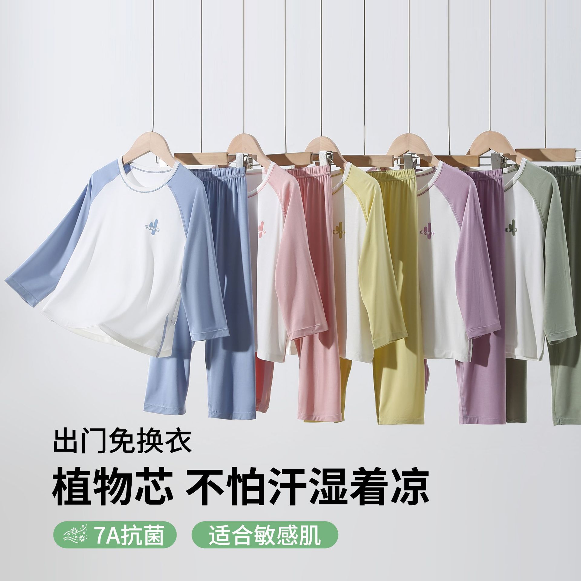 子供用パジャマ春秋男児モーデール秋衣秋ズボン中大童九分袖セット女の子用エアコンルームウェア