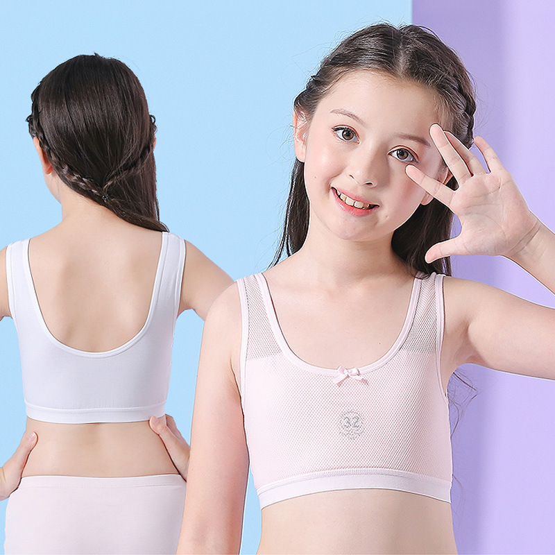 女の子のベスト子供の下着の発育期の学生のストラップは中学生の思春期の少女の胸の通気を拭きます。
