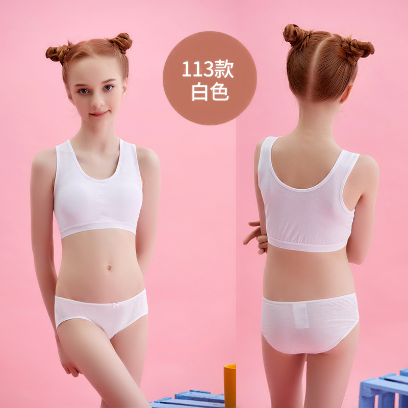 女の子の下着の発育期の13歳の二重の防凸点の学生のベストの中で純綿の子供のブラジャーの少女を着て胸を拭きます。