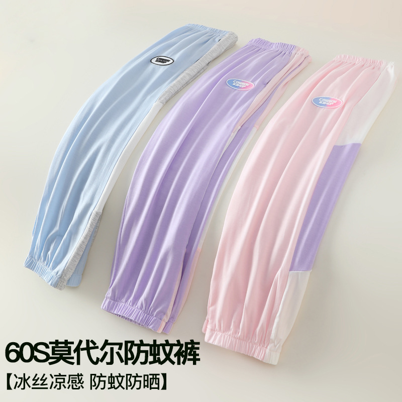 女の子パンツ夏超薄型防蚊パンツ 2025 新しいモーダル女の子スポーツパンツ子供のアイスシルクズボン