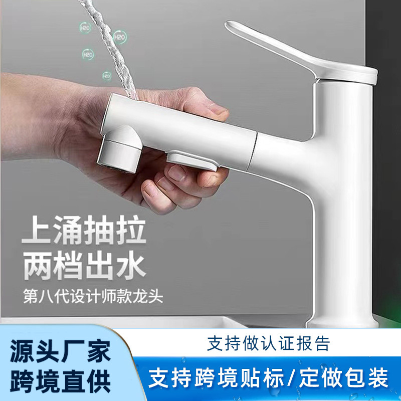 クロスボーダー热い贩売洗面器蛇口白いバスルームトイレ洗面器プルアップ式ユニバーサルオールメタルコールド蛇口