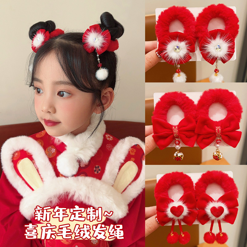 子供の新年の髪飾り女の子の赤いお祝いのぬいぐるみ