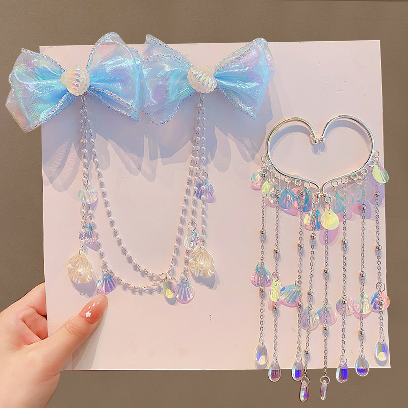 子供のアンティークマーメイド眉毛チェーンヘアピン頭飾り女の子甘いプリンセスイヤリングアクセサリー女の子漢服ヘアアクセサリー