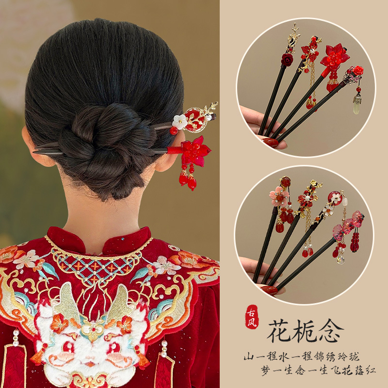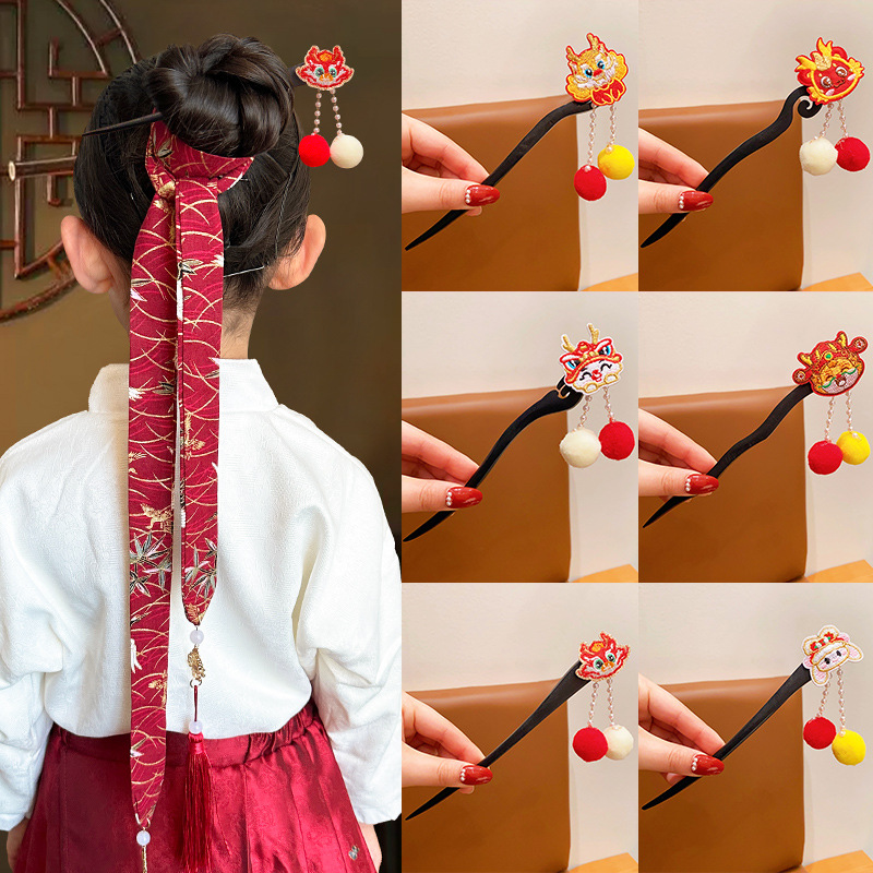 子供の古風のかんざしの女の子の新年の木製のかんざしの赤ちゃんのレトロな中国風の漢服のフリンジガールの髪飾り