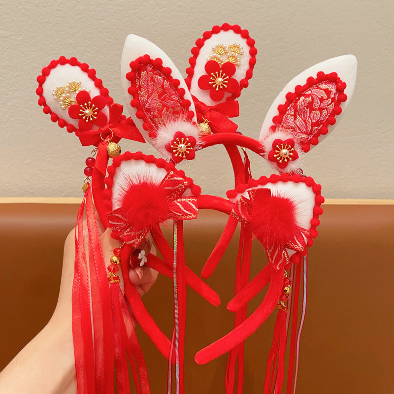 子供の新年の猫の耳のカチューシャの女の子の甘いお祝いの中国風のカチューシャの赤ちゃんの新年の髪飾り