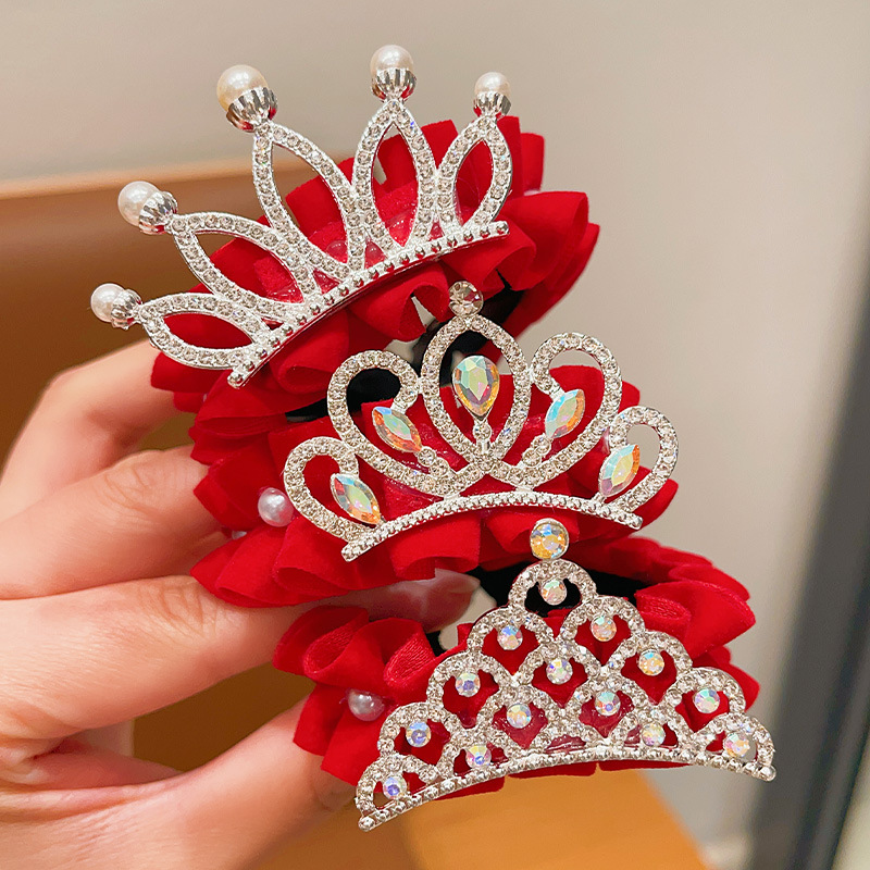 子供の真珠の水のドリルの王冠の盤髪の神器の団子の頭の女の子の新年の赤い髪の飾りのヘアピンの盤髪の神器
