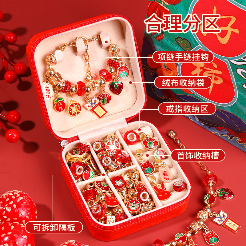 女の子新年ブレスレットビーズ手作りアクセサリープレゼント手串アクセサリーペンダントビーズギフトボックスdiy材料