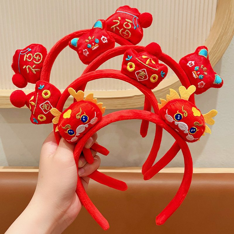 新年の頭飾りの子供の赤い植毛のカチューシャの女の子の新年のお祝いのぬいぐるみのカチューシャの新年のカチューシャ